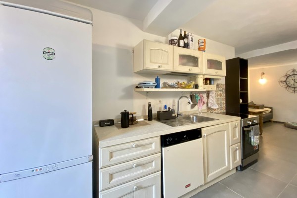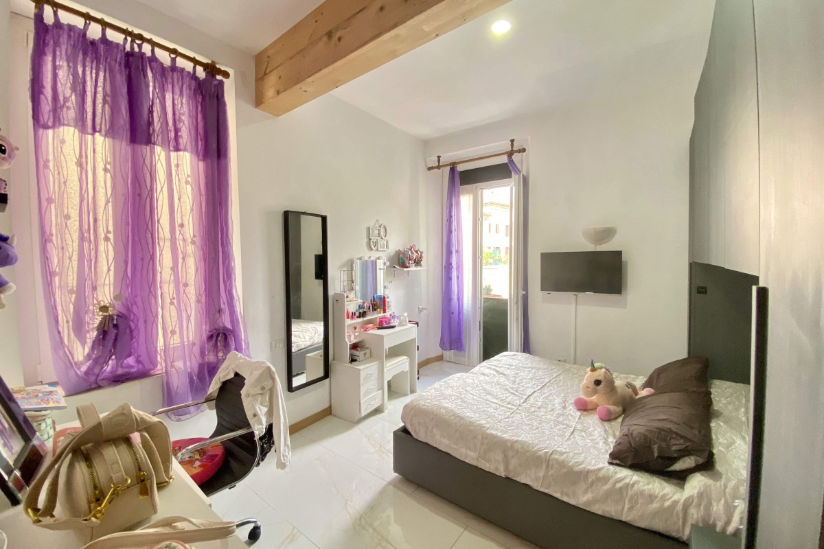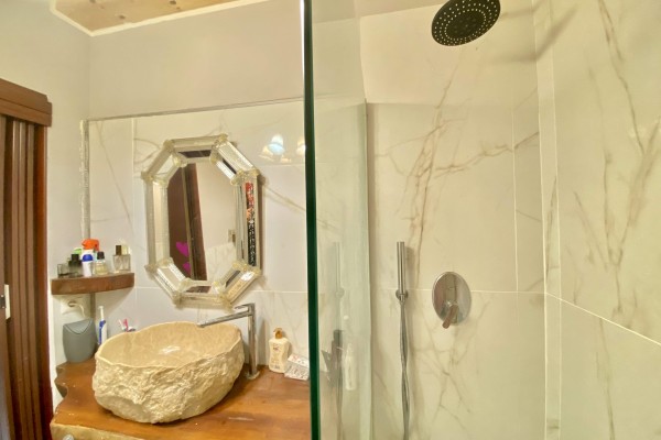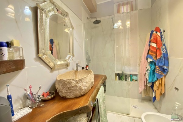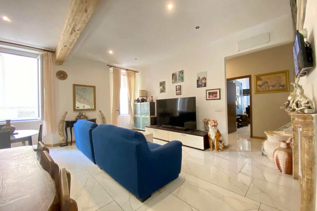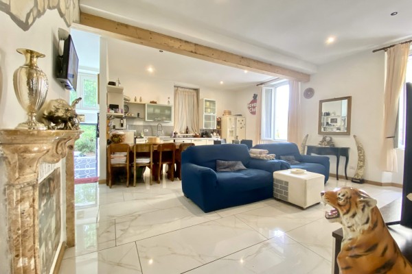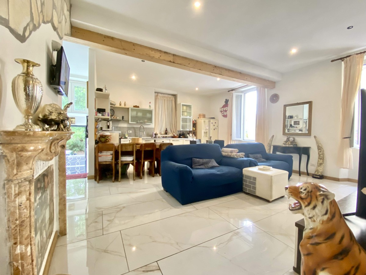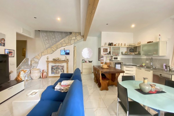 L'ingresso è nella zona giorno dove si dispiega l'ampio e luminoso soggiorno openspace, con cucina a vista, che è possibile personalizzare e arredare come più si preferisce; l'ambiente è illuminato da tre finestre, dotato di canna fumaria e il soffitto è impreziosito da una bellissima trave a vista.