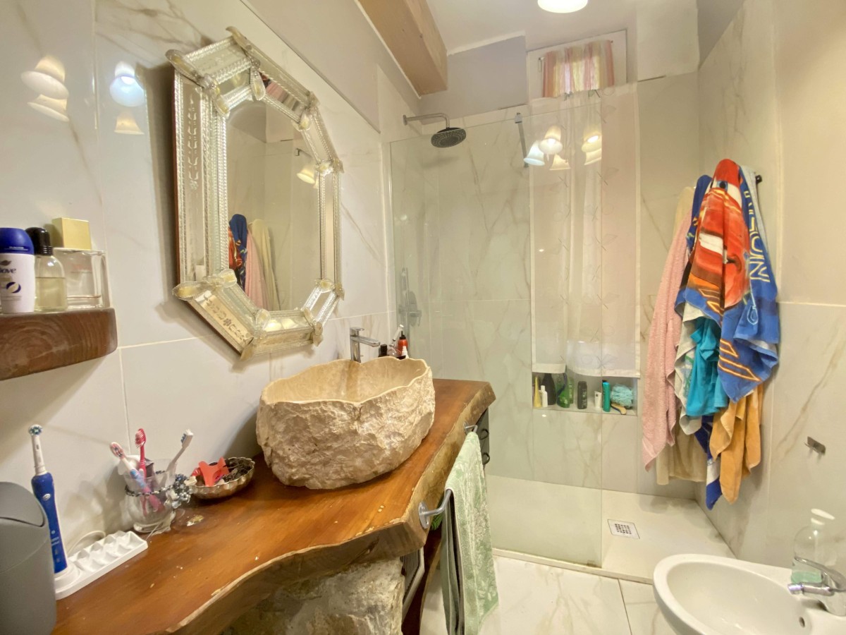 Nella zona notte troviamo le due camere da letto e un bagno con doccia XL.
