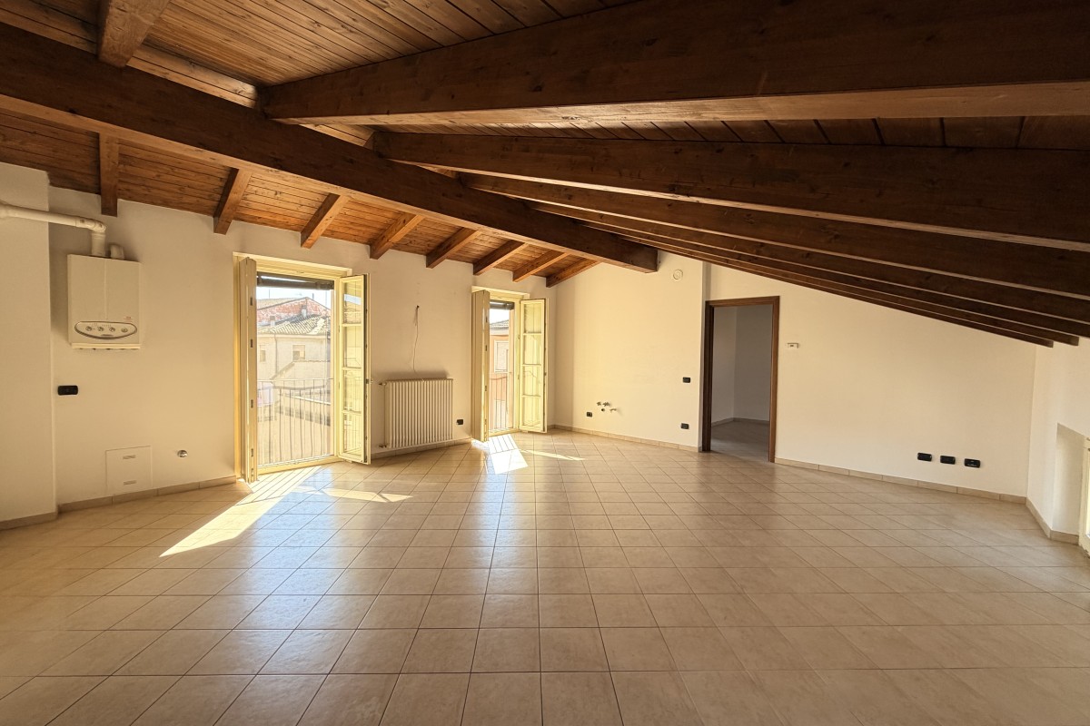 L’appartamento, libero subito, si distingue per il fascino delle travi a vista e per gli ambienti ariosi, ben distribuiti e accoglienti.