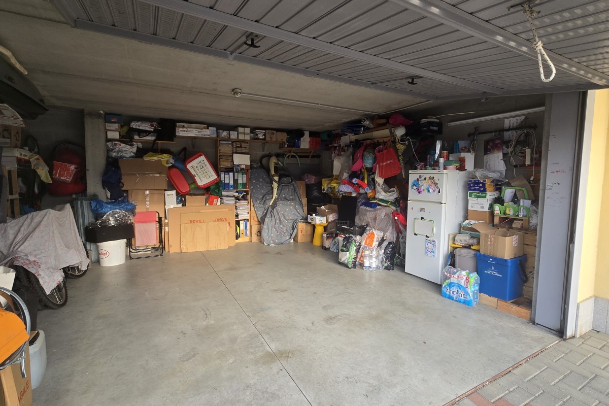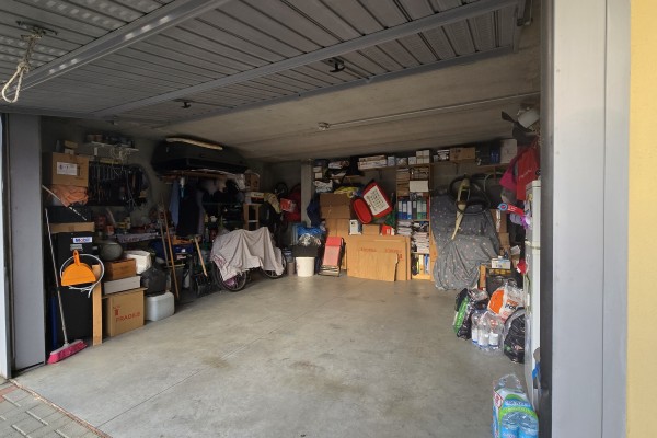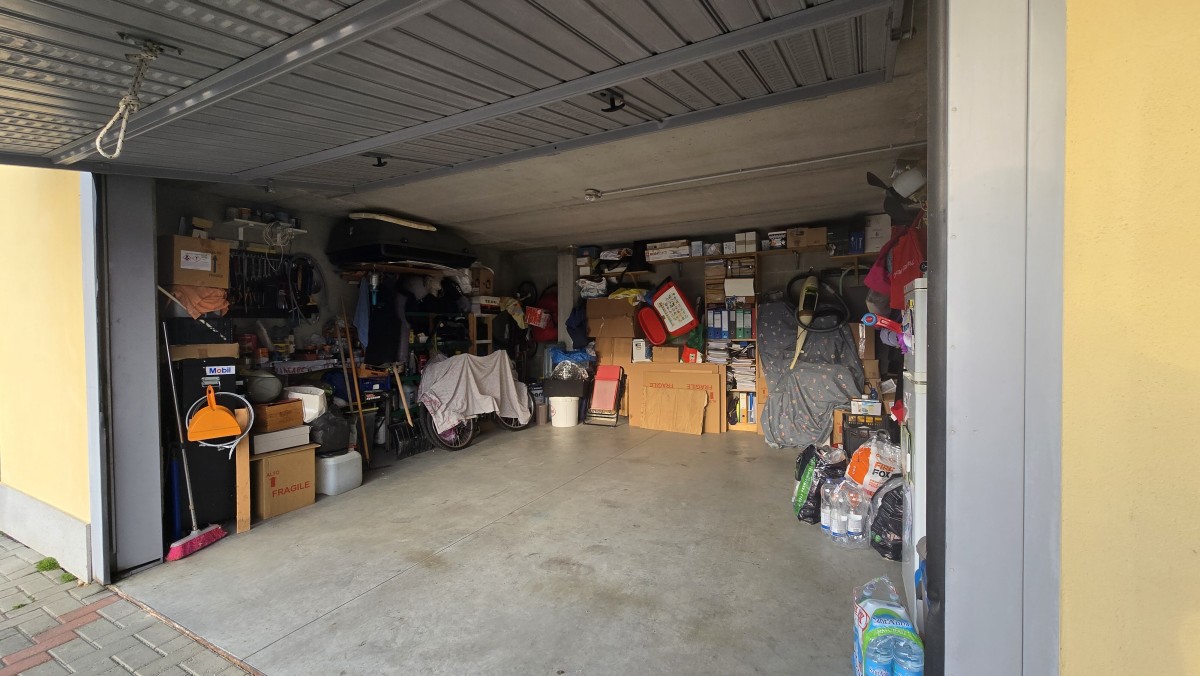 Box doppio di circa 30 mq realmente sfruttabile in larghezza, ideale per due auto affiancate e ulteriore spazio di deposito.