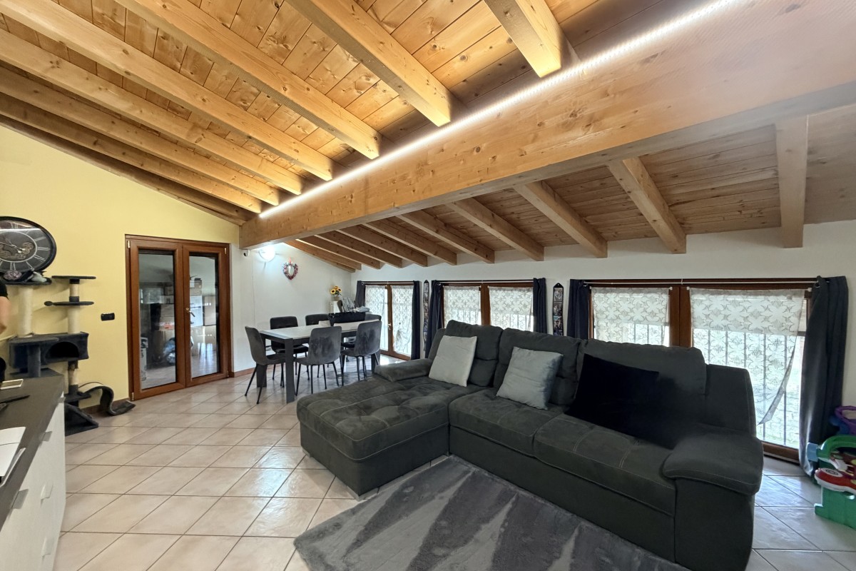 la cucina, abitabile, con balcone e infine l’ampio soggiorno con accesso a un terrazzo loggiato, ottimo per momenti di convivialità e relax.