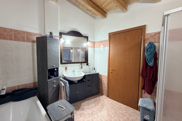 il bagno, finestrato e molto grande, è dotato sia di doccia che di vasca;