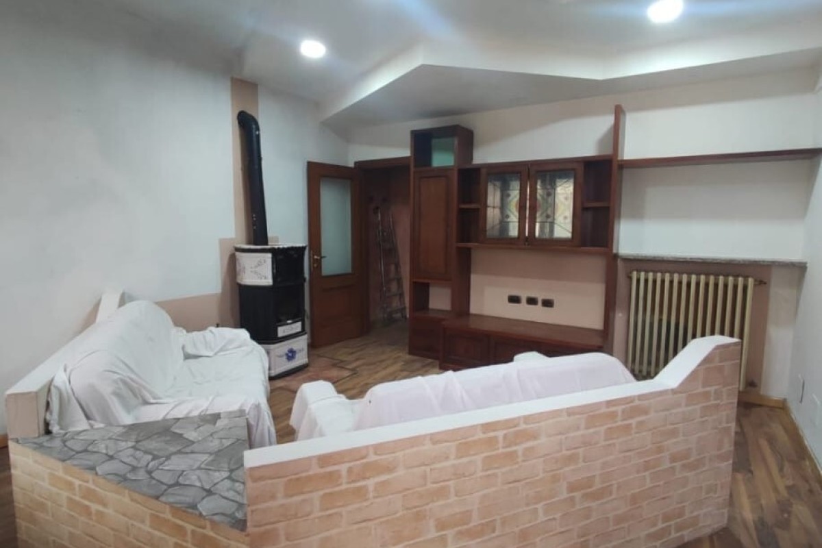 L’ingresso si apre sulla zona giorno, composta da un ampio e luminoso soggiorno impreziosito da stufa a pellet, perfetto per creare un ambiente caldo e accogliente. Dal soggiorno si accede alla cucina abitabile e ad un pratico ripostiglio.