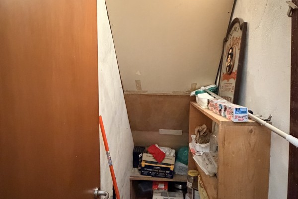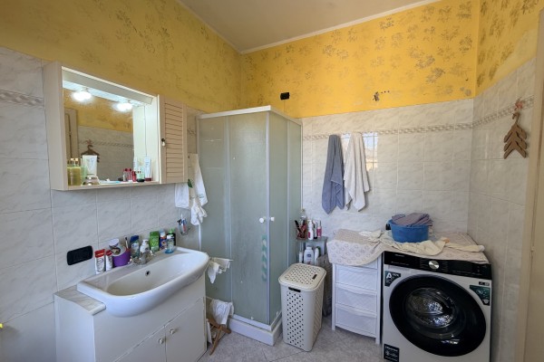 Attraverso un disimpegno, sempre dal soggiorno, si raggiunge la parte esterna dell’immobile dove troviamo un secondo ingresso indipendente con affaccio sulla corte comune, nella quale è possibile parcheggiare l’auto.