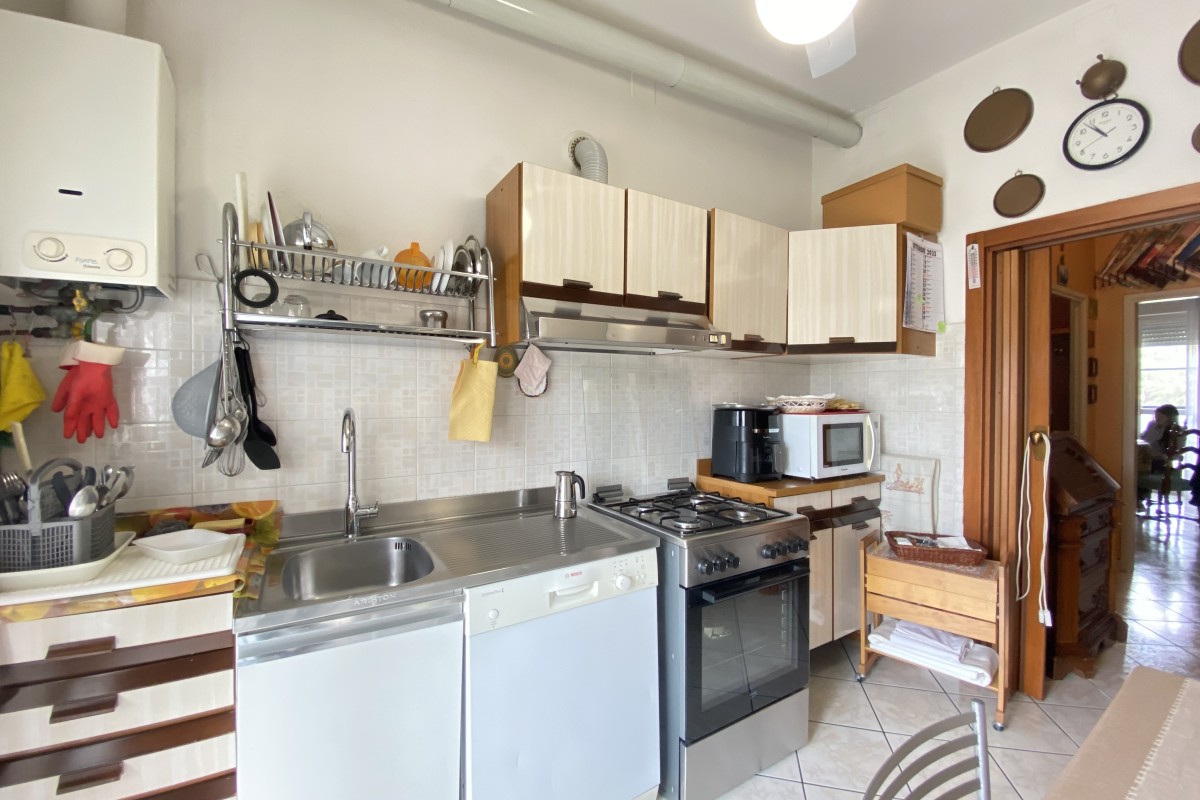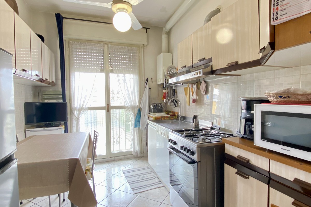 cucina abitabile con balcone, sulla destra l’ampio soggiorno con balcone