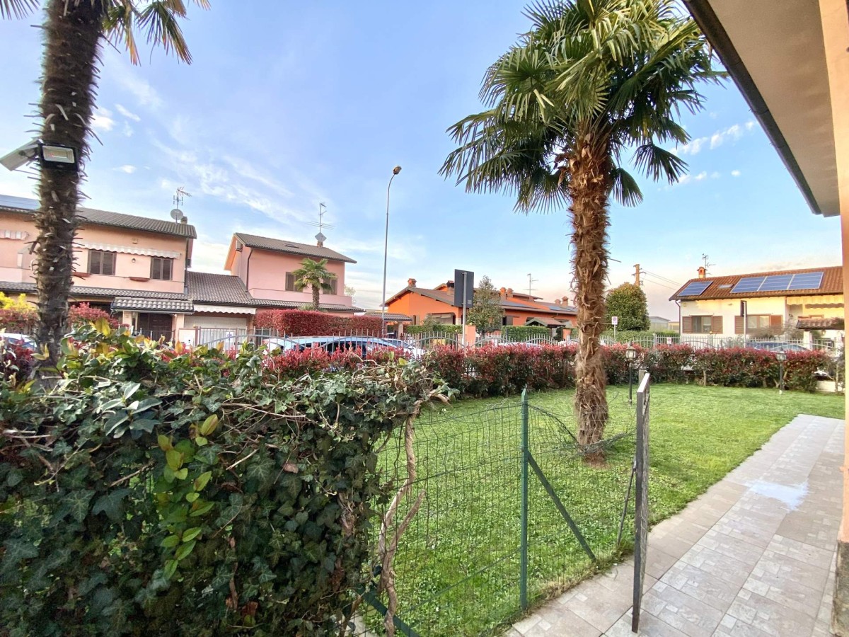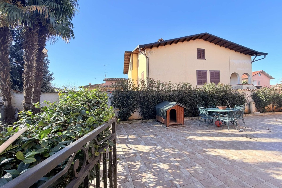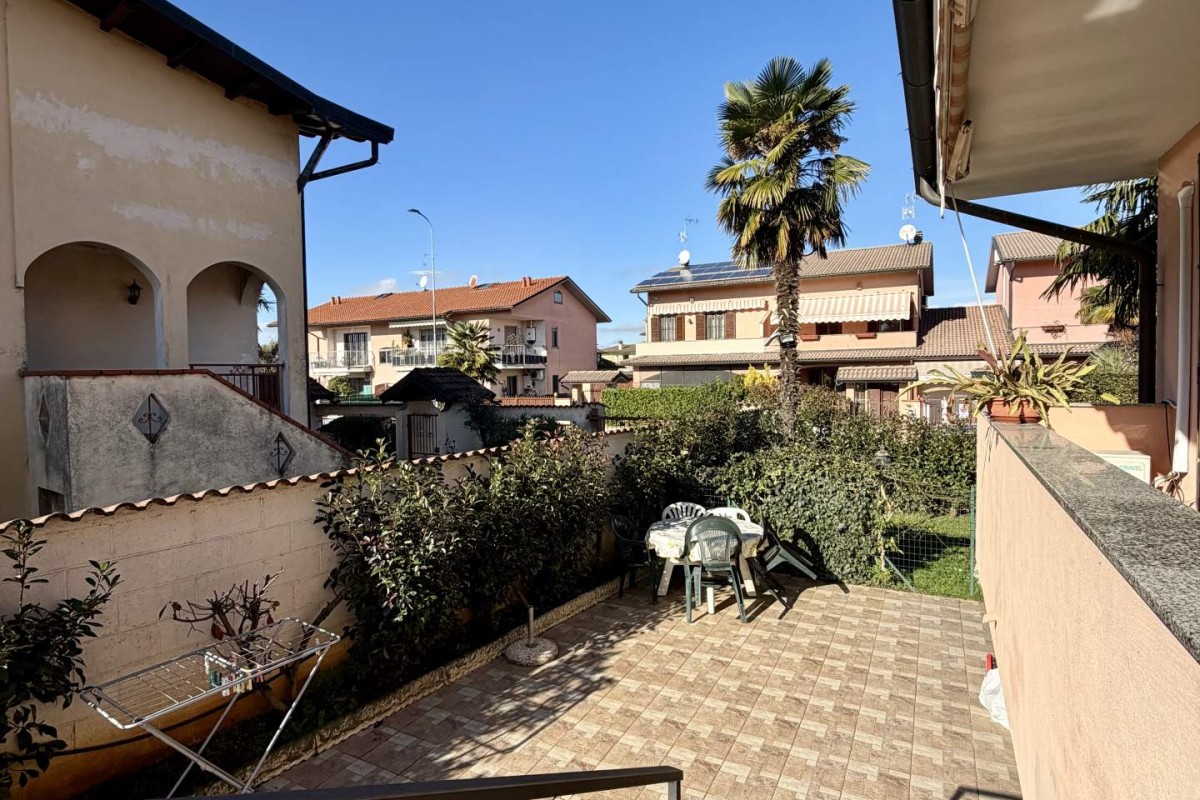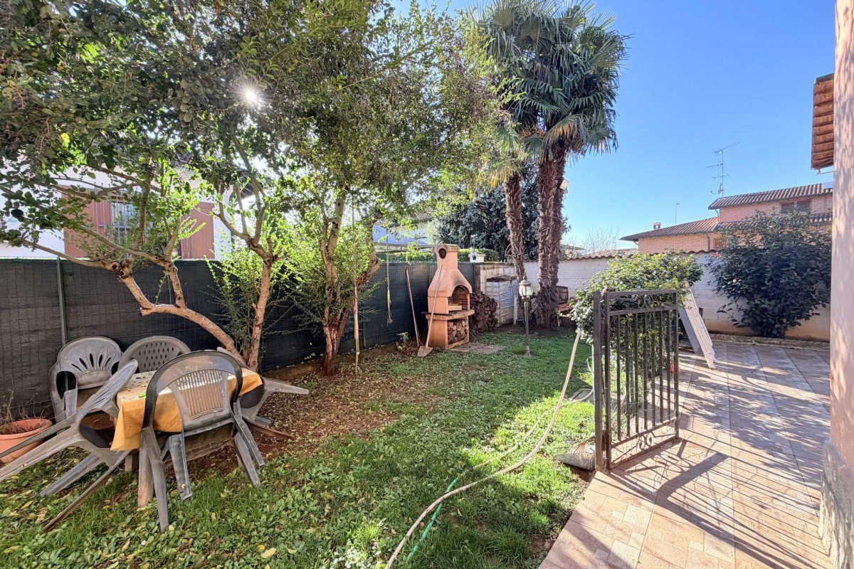 è in parte piantumato e in parte piastrellato e potrebbe ospitare anche di una bella piscina, ha irrigazione automatica e permette di essere