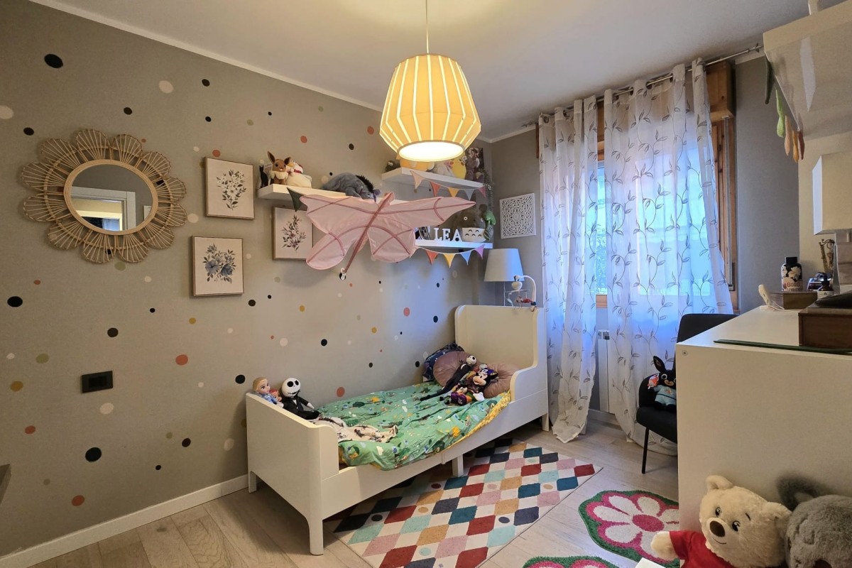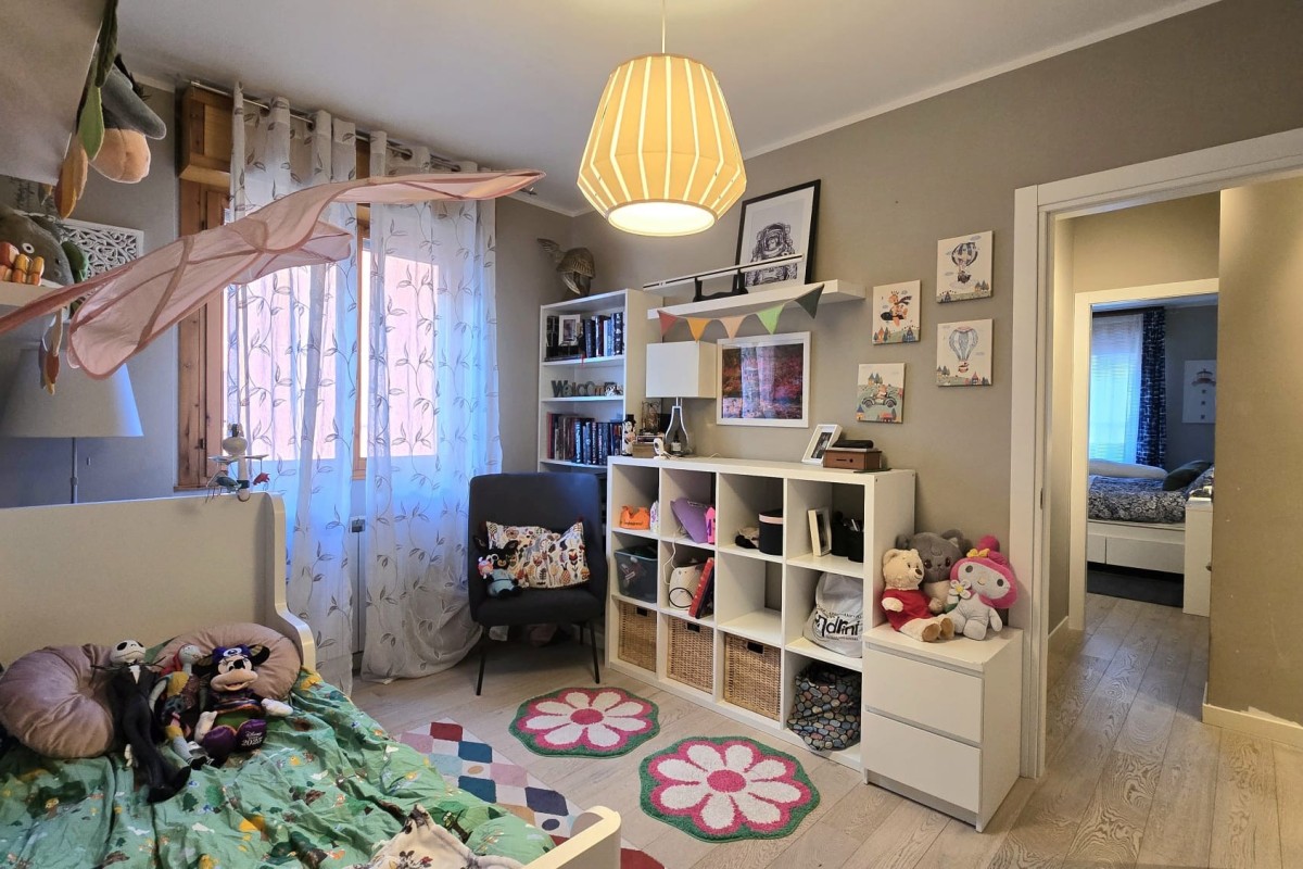 Un primo bagno/lavanderia (cieco) con doccia, una cameretta versatile, ideale anche come studio per lo smart working, il secondo bagno finestrato con ampia doccia e una camera matrimoniale dalle generose dimensioni.